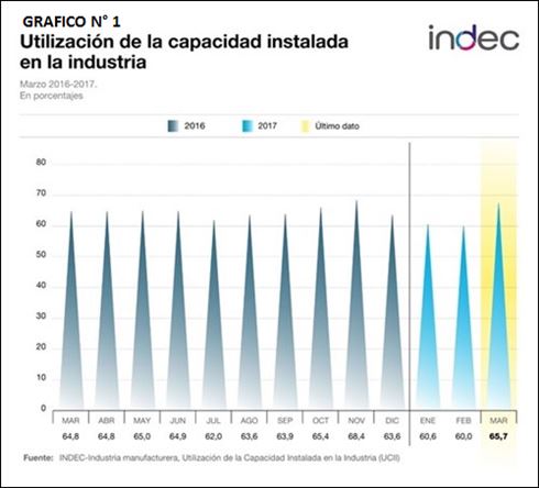 El Instituto Nacional de Estadística y Censos publicó en su página oficial, cuál es la situación de la industrial al mes de marzo de 2017, y menciona que la misma se ubica en un 65, 7, /% de su potencial en funcionamiento.