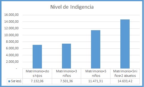 En cuanto al nivel de indigencia para similar composición, los ingresos necesarios para no ser indigentes ascienden a $ 7.132; $ 7.501; $ 11.471 y $ 14.633 respectivamente-